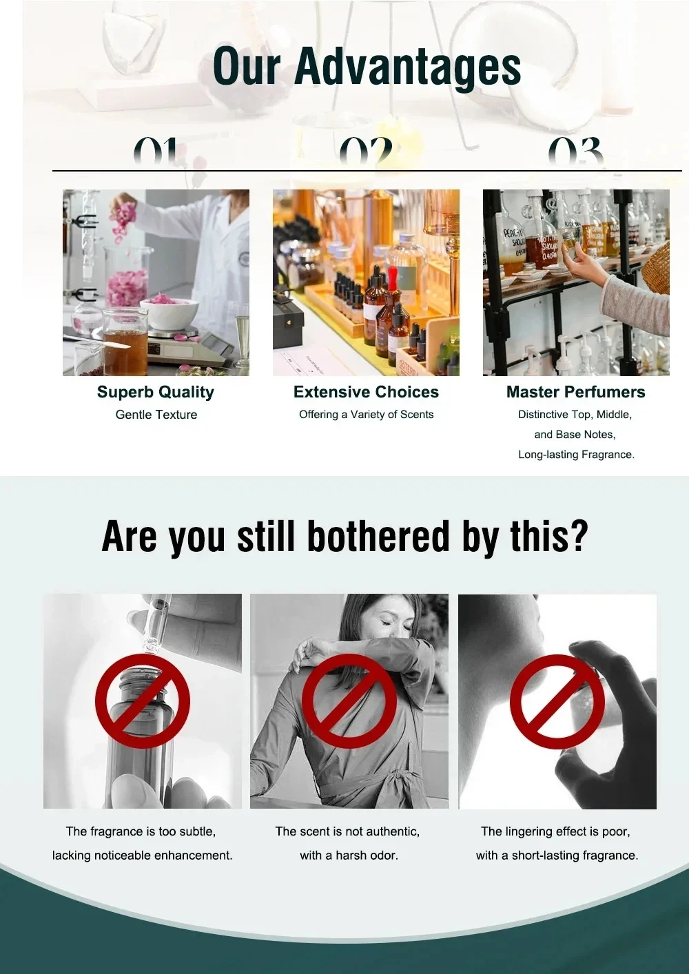 (2) No Additives, No Fillers. Committed to Providing High-Quality Fragrance Products.